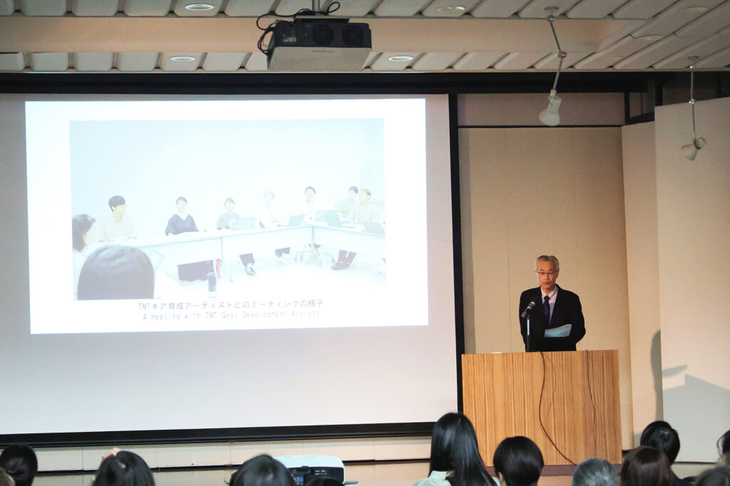 ・開館から35年を経て、今までも様々な国際共同制作や国際的な事業を展開してきたが、文化施設支援事業の「TMTギア ―東京芸術劇場クリエイター支援プロジェクト」は、舞台芸術・音楽の未来を切り開くため、次世代のクリエイターとともに新しい作品を作り上げるプロジェクトである。当プロジェクトの特徴の一つは、パフォーマンス、音楽部門のアート・クリエイターだけではなく、伴走する映像メディアチーム4名、同劇場のプロデューサー、舞台技術スタッフの6名も育成する点にある。